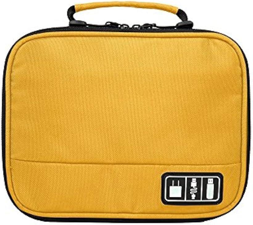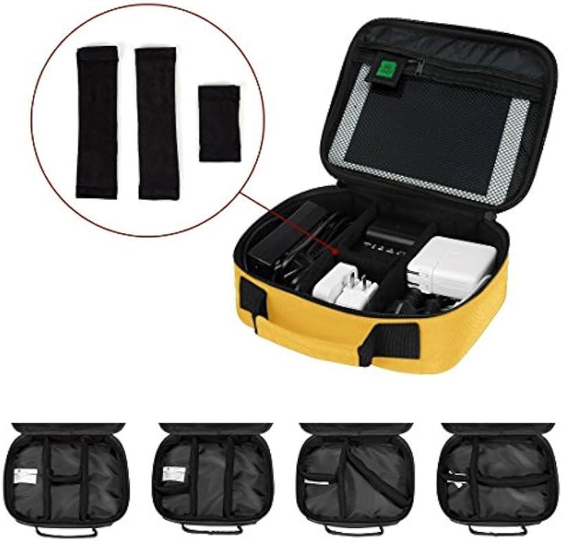 PC周辺 小物用 収納ポーチ マジックテープ式仕切り マルチオーガナイザー(イエロー)