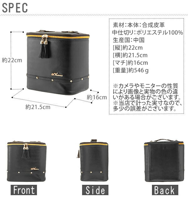 素材本体:合成皮革、中仕切り:ポリエステル100%生産国中国サイズ本体:[縦]約22cm×[横]約21.5cm×[マチ]約16cm仕切りボックスS:[縦]約7.5cm×[横]約12.5cm×[マチ]約6cm仕切りボックスM:[縦]約9cm×[横]約12.5cm×[マチ]約6.5cm※サイズは当店平置き実寸サイズです。