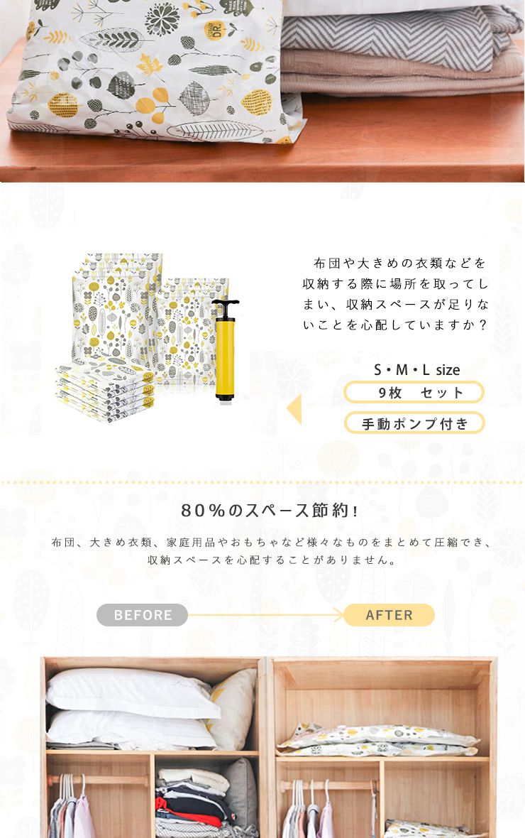 ふとん 衣類 圧縮袋Lサイズ・3枚XLサイズ・3枚SMLセット・9枚