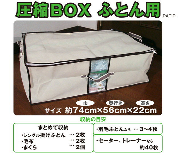 圧縮BOX ふとん用 (1セット) 日本製 品質保証書付 布団圧縮 布団圧縮ボックス ボックス 圧縮袋 ふとん圧縮袋 押入れ収納 ふとん収納 布団収納袋 収納袋 布団 ふとん 収納【送料無料】