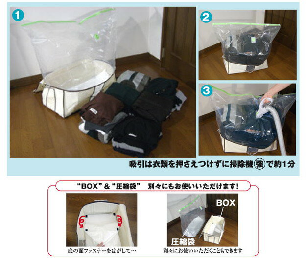 圧縮BOX 衣類用L (1セット) 日本製 品質保証書付 衣類圧縮 布団圧縮ボックス ボックス 圧縮袋 ふとん圧縮袋 押入れ収納 ふとん収納 布団収納袋 収納袋 ふとん 布団 収納【送料無料】